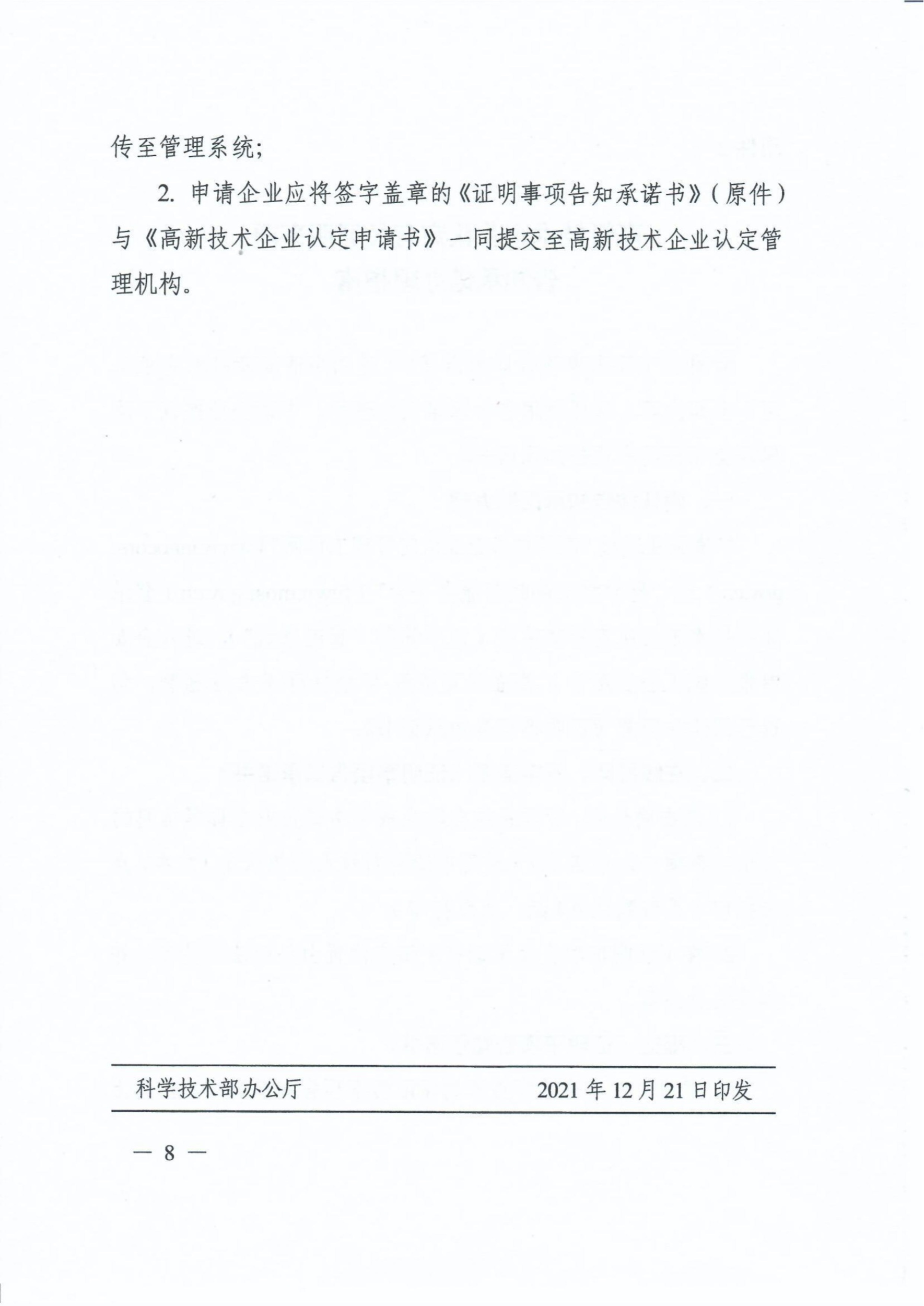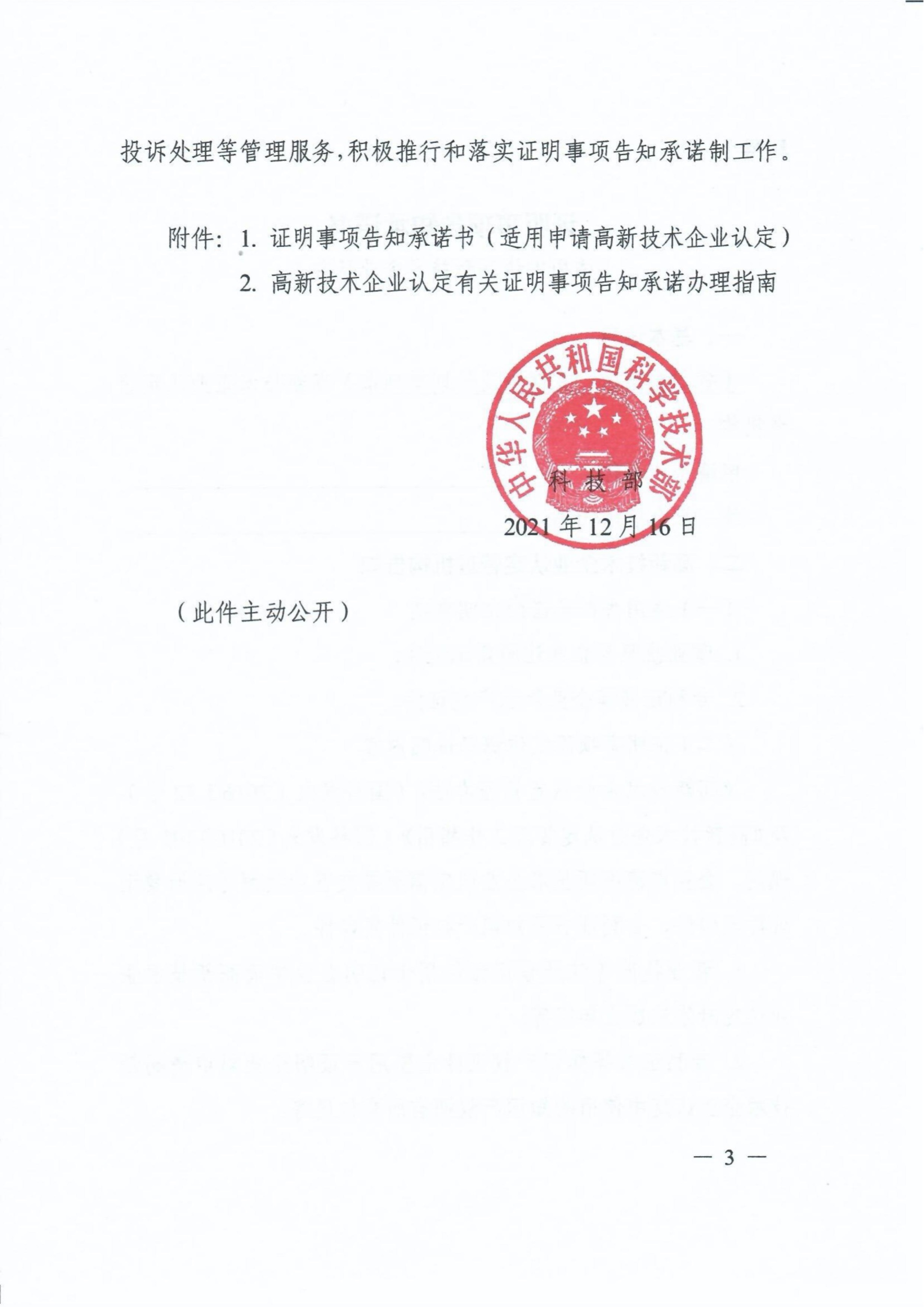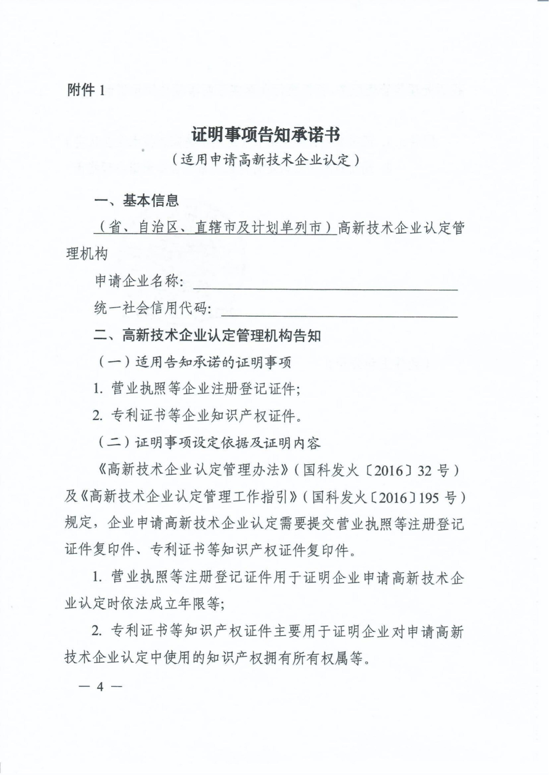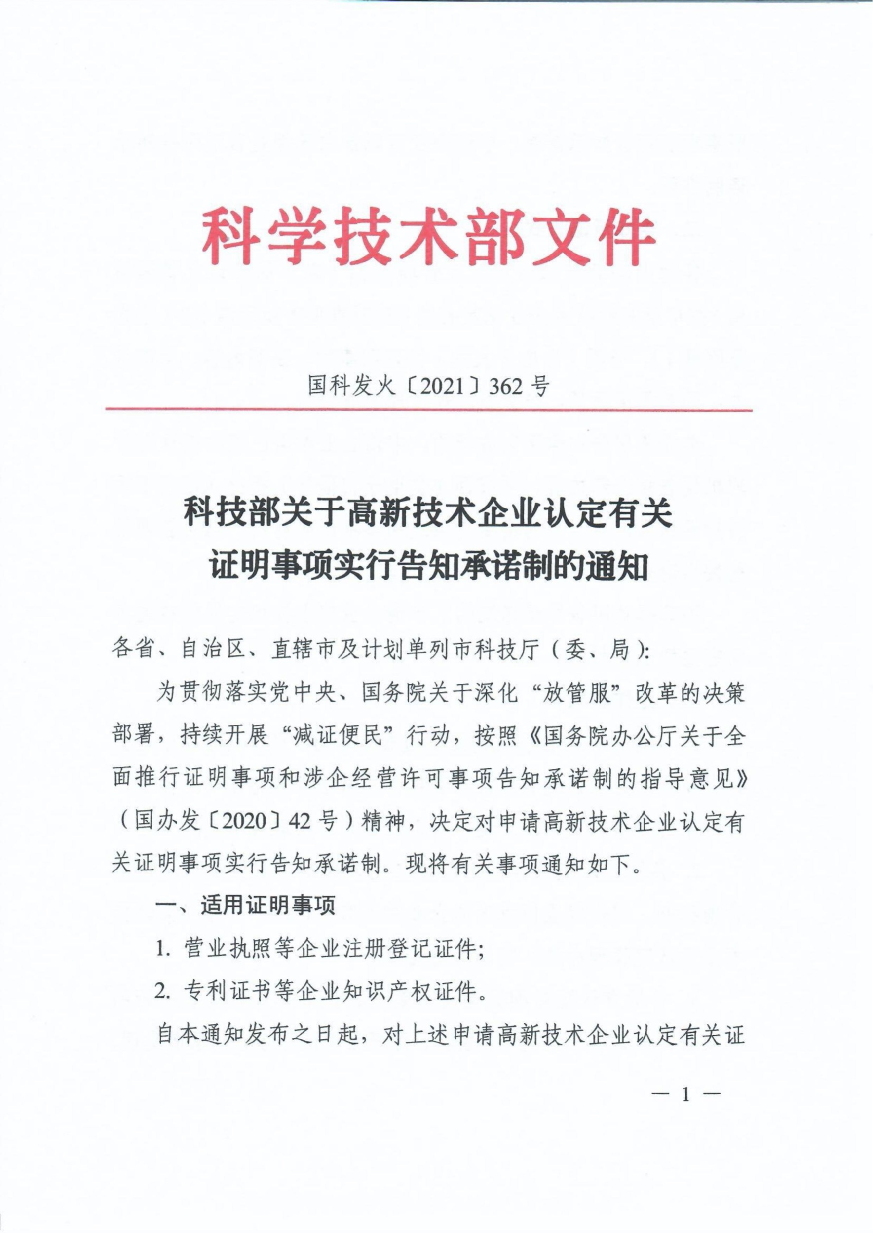 科技部关于高新技术企业认定有关证明事项实行告知承诺制的通知